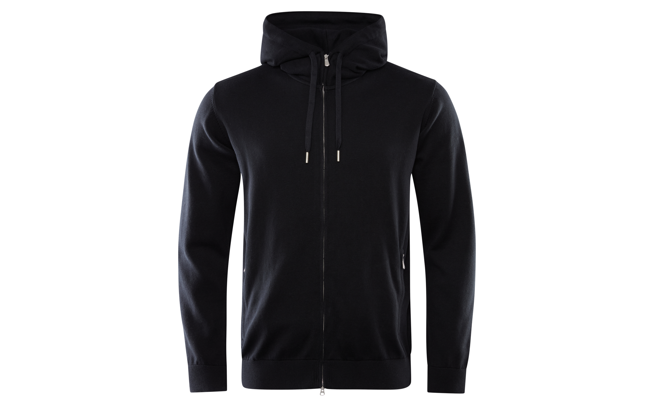 Bowman Knitted Zip Hood is a finely knitted hoodie with a zipper, made from soft and lightweight organic cotton. The hoodie features ribbed cuffs at the sleeve ends and at the bottom, along with a hood that can be adjusted with a drawstring. It is designed with a discreet Sail Racing block logo on the left sleeve.