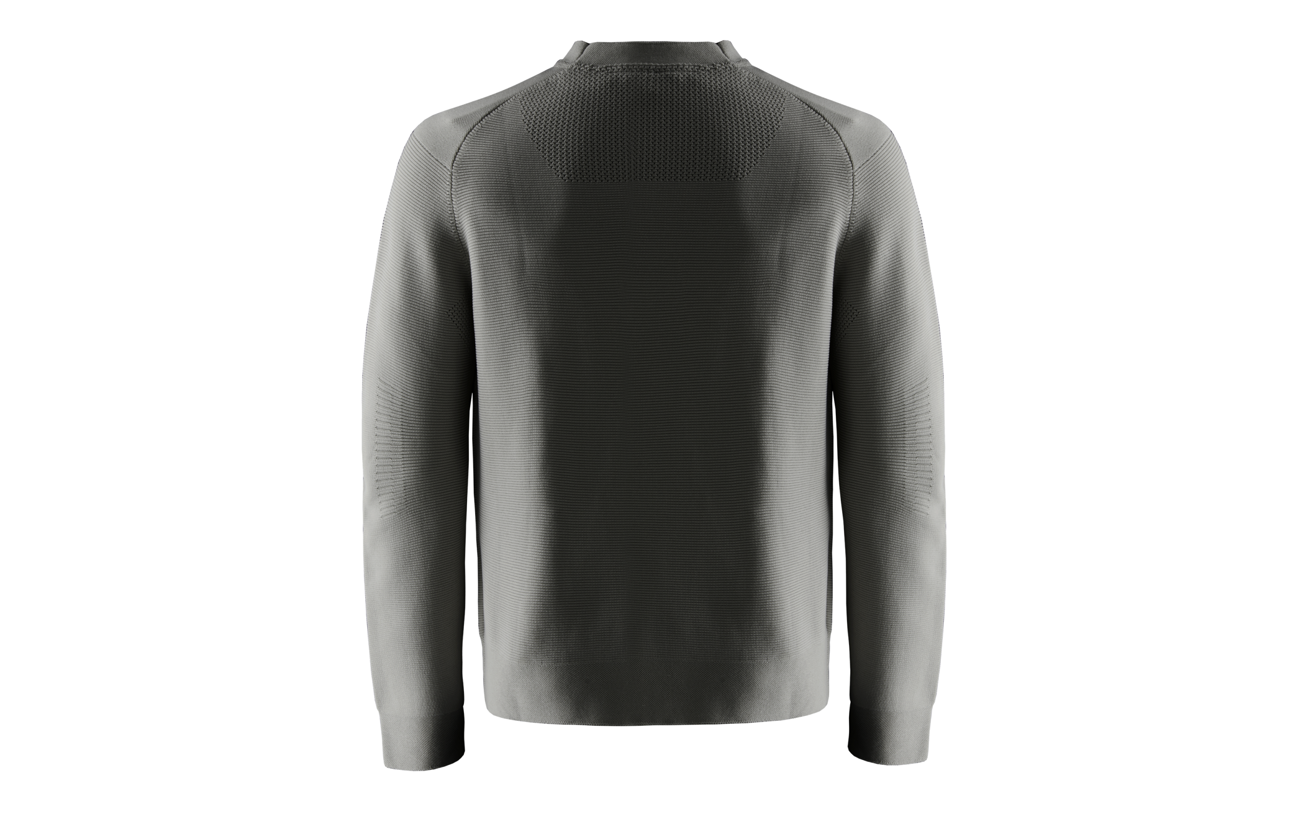 3D Seamless Knit Technology: To create this crewneck, we used a newly developed, innovative 3D knitting technique. This computer-programmed knitting machine creates new possibilities in the construction process by knitting three-dimensional, seamless structures with various knit designs. With this advanced method, the garment is crafted to feature high flexibility and freedom of movement in all directions, along with good breathability and comfort, while also minimizing fabric waste during the production process.