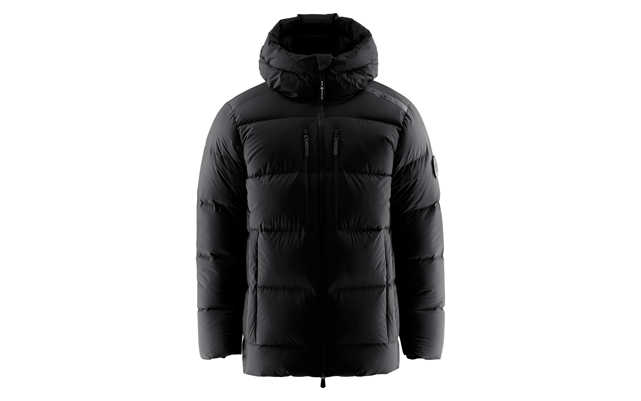 The Hurricane Down Parka is a windproof and water repellent down jacket made in nylon and polyurethane. The jacket has a unique double layer down construction with overlapping down channels to minimize heat loss. The jacket has high breathability of 10,000 MVP and an internal lining in graphene-nylon to optimize temperature regulation. To further add to the jacket’s functionality, it is equipped with a PFC-free DWR treatment with water-repellent properties that prevent the fabric from getting wet. The jacket is filled with 90/10 Blue Sign and RDS certified down and feathers for warmth and comfort in cold winter conditions. Fill power 700.