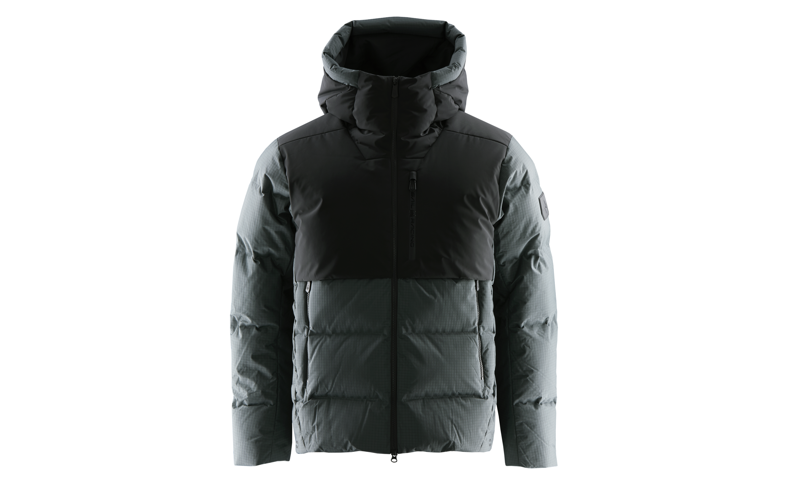 The jacket is treated with a PFC-free DWR finish for effective water repellency, improving water runoff and helping to keep the outer fabric dry. For warmth in cold winter conditions, the jacket is insulated with 90/10 bluesign® APPROVED and RDS-certified down and feathers with a fill power of 700, and reinforced with 100 g PrimaLoft® Black Rise in the side panels.