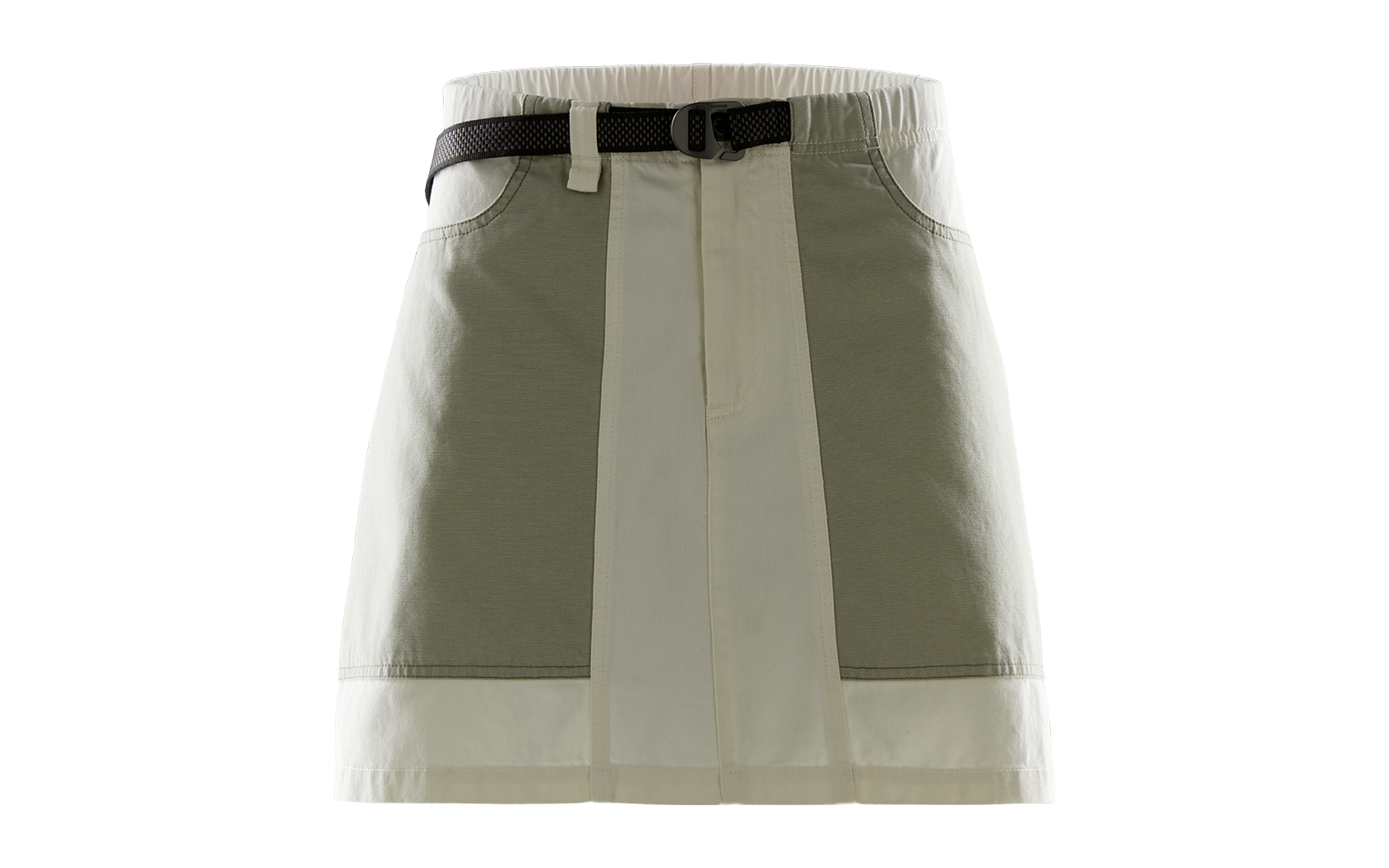 W Mist Blocked Skirt, crafted in a heavy-weight cotton twill with a washed effect for a summery look. The skirt has two spacious hand pockets and can be adjusted at the waist with a built-in woven belt and metal buckle for a comfortable and secure fit. Designed with blocked parts in contrast fabric at the front and back and a woven Sail Racing logo at the back right side, below the waist.