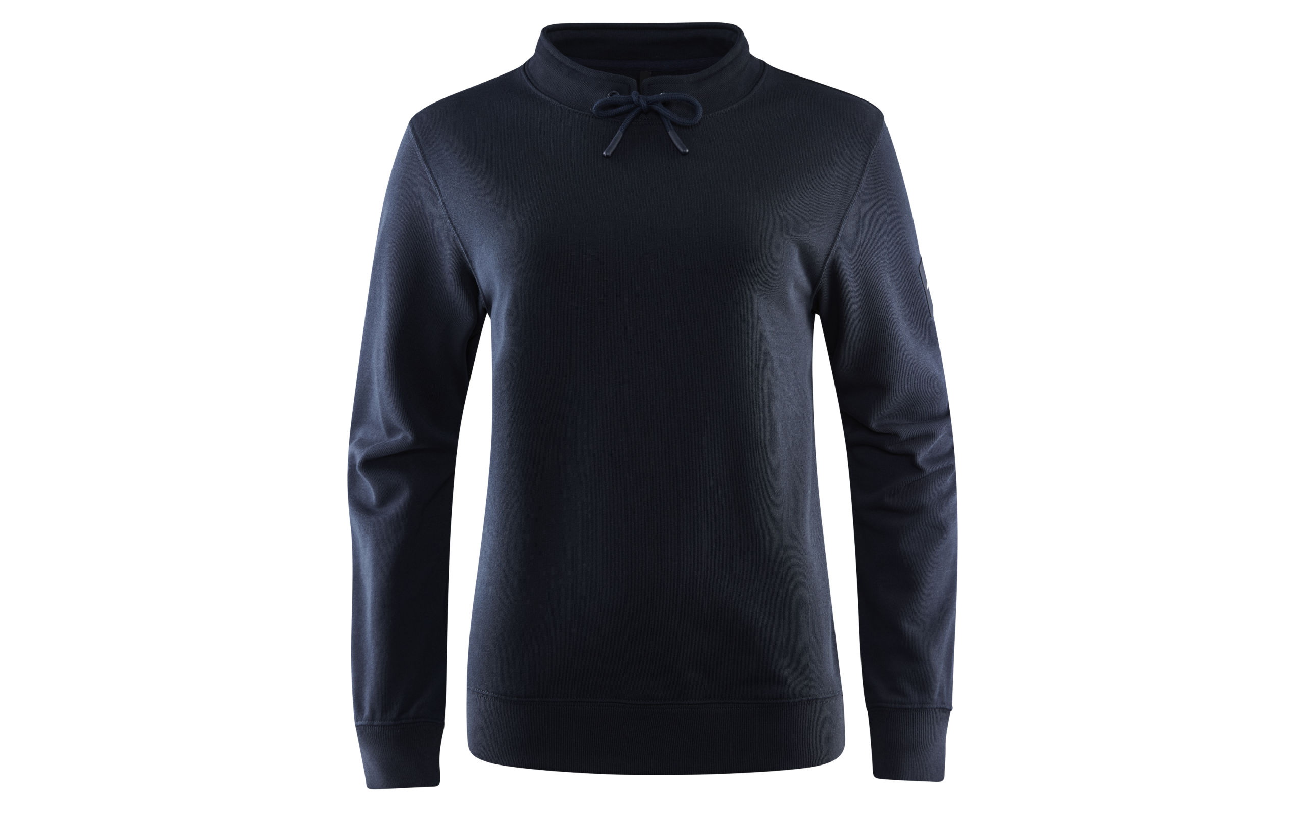 Women’s Wave Sweater, crafted from heavy-weight cotton twill, featuring a higher neckline with a drawstring closure. The sweater also comes with ribbed cuffs at sleeve ends and bottom hem for a comfortable fit. Designed with a woven Sail Racing logo-patch at the left sleeve.